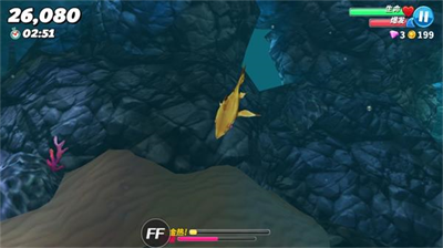 2、成长体系:通过吞噬进化机制,逐步解锁7个成长阶段的鲨鱼形态,每阶段均可进行咬合力、游速等专项强化