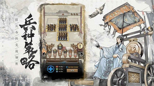 游戏定期推出限定历史剧本,玩家可参与还原度极高的潼关之战、合肥之战等经典战役。联盟系统支持千人同图争霸,通过外交结盟、资源争夺等策略玩法,体验真实的三国势力角逐。近期更新加入古籍收集玩法,通过研习《孙子兵法》《六韬》等典籍可获得特殊阵法加成。