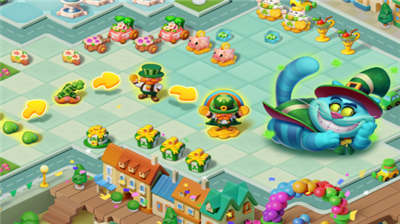 城堡建造系统支持自由布局,玩家可打造独具特色的童话庄园。通过合成不同风格的建筑组件,既能还原经典童话场景,也可混搭出天马行空的奇幻景观。每个角色都有专属技能树,解锁疯帽子可加速时间类道具产出,激活白兔先生则能提升移动合成效率。