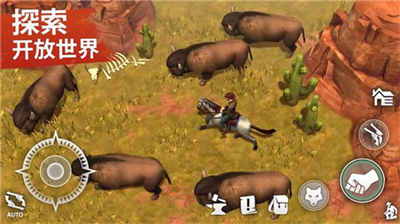西部土地生存荒野冒险之旅采用电影级3D画面呈现经典西部主题,玩家将在广袤的荒漠地带化身传奇牛仔,通过精准射击与策略生存征服危机四伏的边疆世界。游戏创新融合装备锻造、据点建造与野生动物驯养系统,玩家可通过伐木采矿获取资源,打造个性化武器库,更能建造专属牧场体验拓荒者生涯。