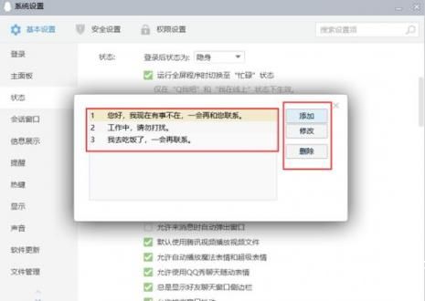 在PC端QQ客户端中,状态管理模块内置了智能应答系统。通过状态关联的自动回复机制,可实现不同场景下的智能应答。以下为详细操作步骤: