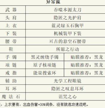 采用黑灵缠绕手镯启动异常状态,蓝灵绿玉石胸甲需具备出血伤害+30%词条方能发挥完整实力。亘古悬空石腰带与所愿之行动战靴形成异常持续时间延长链,原子核项链提升状态附加效率。诅咒之心与隐匿护肩协同强化异常伤害,建议优先确保核心词条再选择此流派,否则可转用攻速体系过渡。
