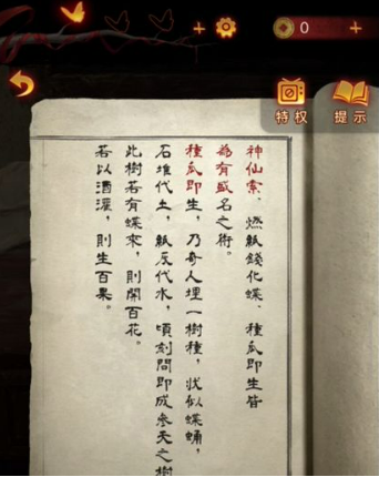 使用刀币开启隐藏抽屉获取植物种子,将种子与纸灰混合投入碎石堆后触发场景变化,生长出的古树可摘取葫芦道具。在童子雕像处结合树冠提示完成方位谜题,通过多次调整女童雕像位置获取特殊纸钱道具。