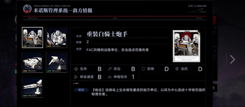 重装白骑士炮手作为核心威胁单位,其攻击模式以最高生命值角色为中心形成十字范围杀伤。除首次攻击可硬抗外,后续炮击需通过实时换位规避,建议设置副坦轮流承担伤害。