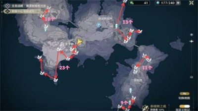 2. 峡谷穿梭线(23个点位):贯穿泰缇斯裂谷的核心路线,需注意部分点位位于悬浮平台上,建议携带二段跳角色