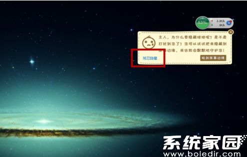 程序为防止误操作会弹出二次确认对话框,该提示窗采用拟人化设计语言进行挽留。用户需在弹出界面中找到「残忍隐藏」的蓝色确认按钮,通过左键单击完成最终设置。此时返回桌面环境即可发现加速球已从可视化界面移除。
