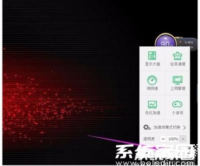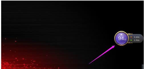 在电脑桌面可见区域找到半透明的圆形加速球,将鼠标光标移动至该组件上方,使用鼠标右键单击调出功能菜单。