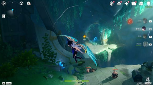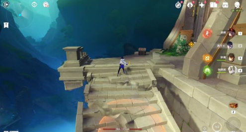 3、通过坍塌区域时切勿直接飞跃,立即180度转向可发现隐藏平台。此处两只持盾丘丘人需使用破盾角色应对,击败后即可开启首个精致宝箱。