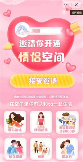 4、点击界面中的【邀请伴侣】功能键,系统将生成专属邀请卡片,可通过私信通道发送给交往对象