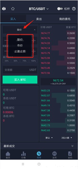 7. 交易模式切换控件位于报价面板上方,市价单功能适合追求即时成交的用户。需注意大额市价单可能造成价格滑点,建议分批下单控制交易成本。