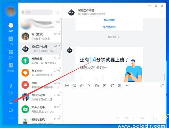 首先启动钉钉客户端,在左侧功能导航栏定位蓝色云朵图标的「钉盘」入口。这个企业级云存储空间支持各类文档的集中管理与共享,是文件操作的核心区域。
